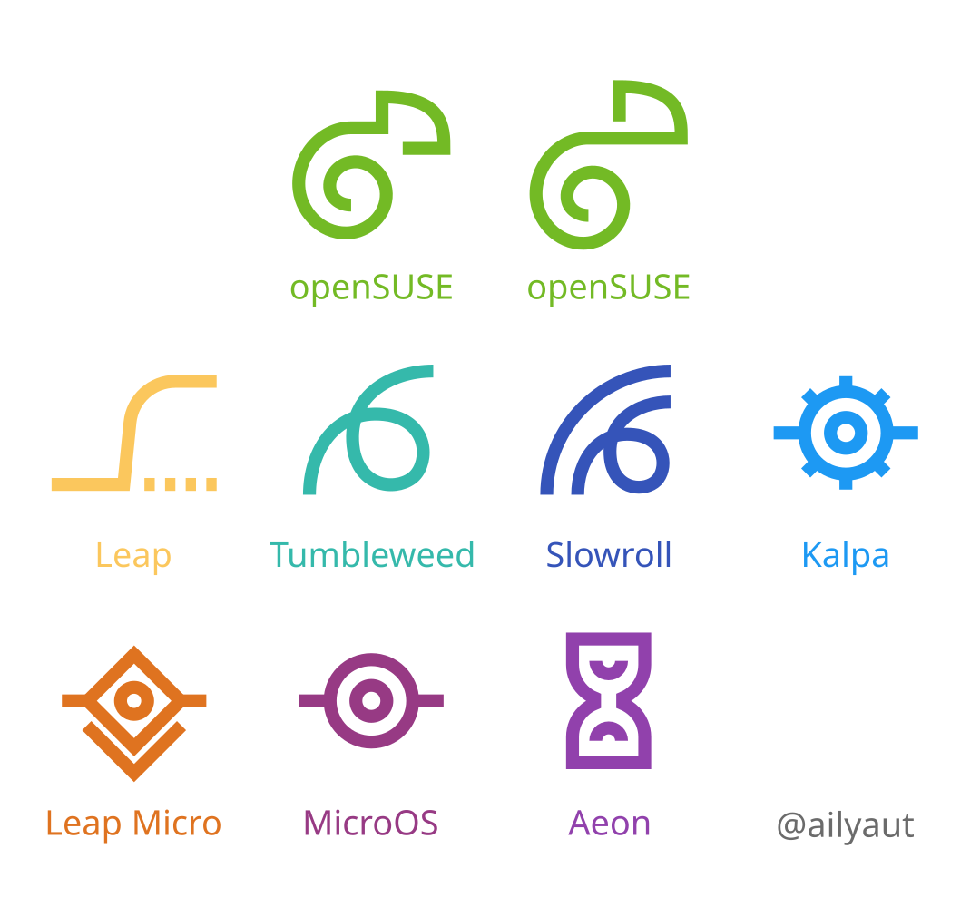 - 在 openSUSE、Tumbleweed、Leap、Slowroll 或 Kalpa 标题下发布 Logo 的 PNG 图片