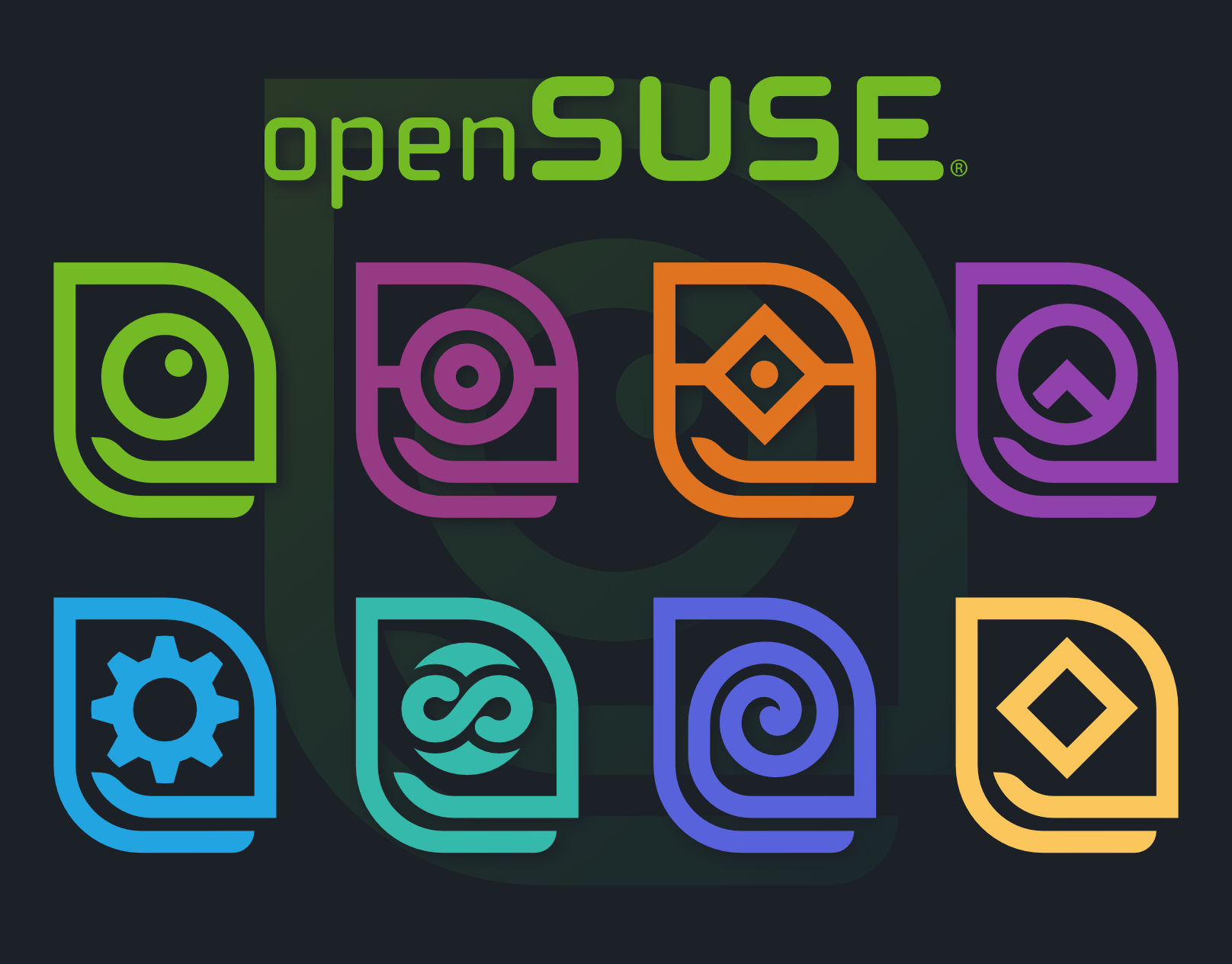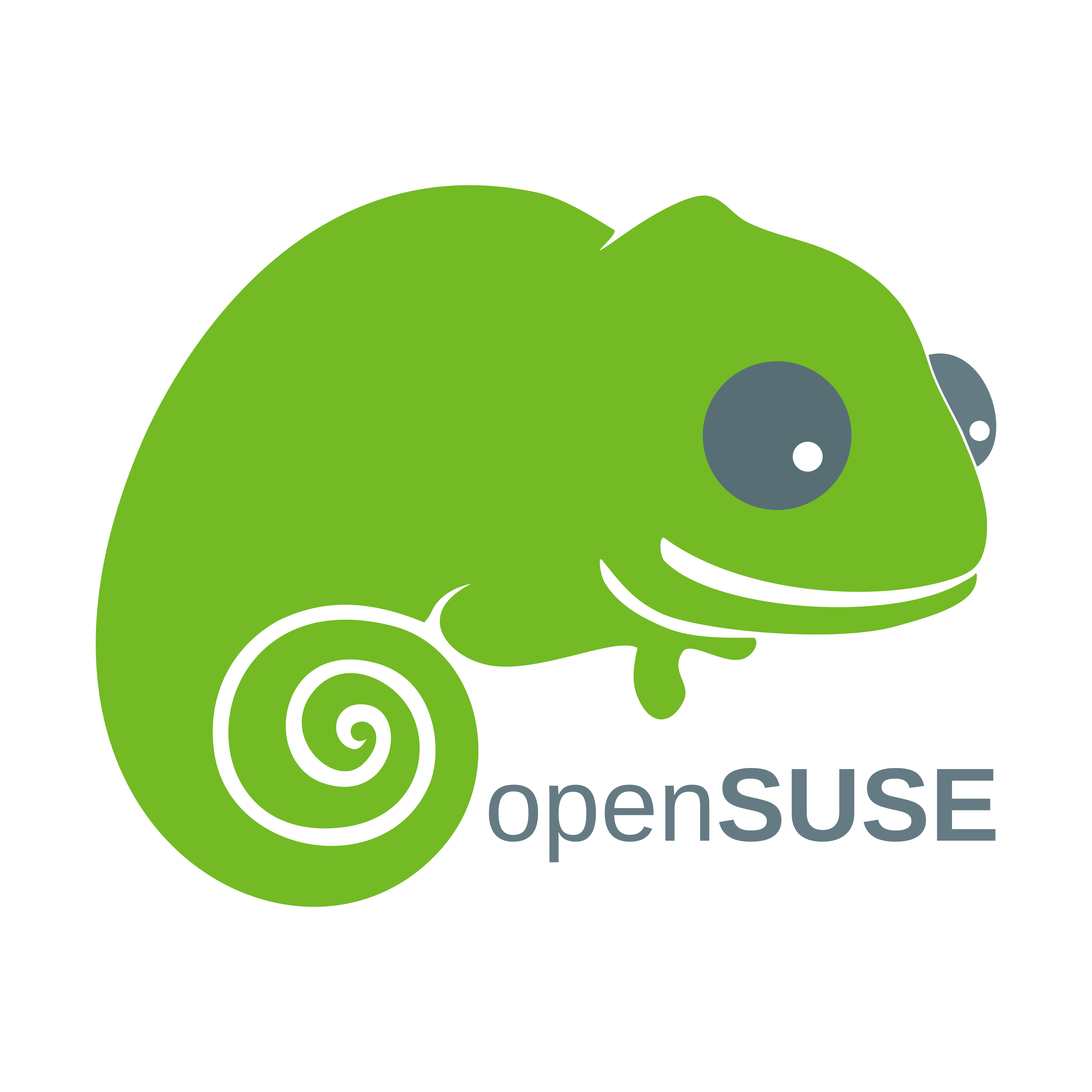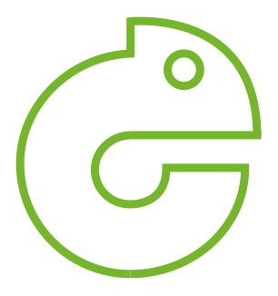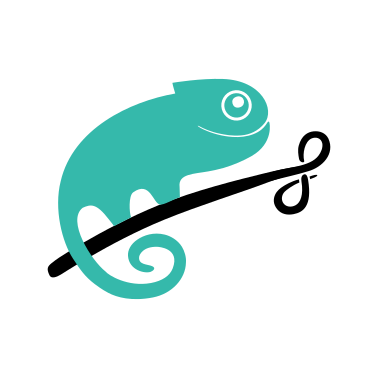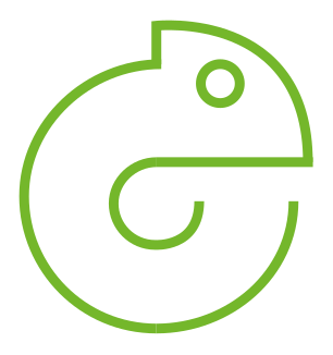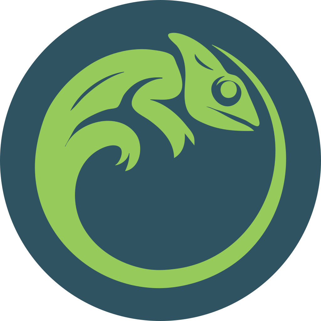 Q OpenSUSE by td0.png. 友好的且聪明的变色龙,代表该项目的理念。每个发行版都使用了不同类型、颜色鲜艳的壁虎。