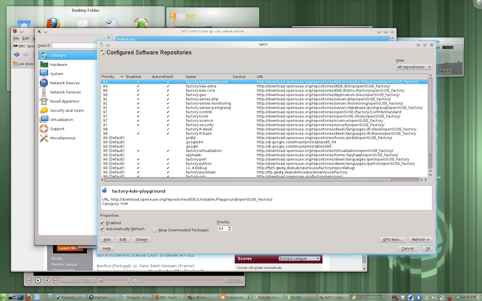 openSUSE 的 ZYpp 软件包管理引入了新的 MultiCurl 后端、zsync 传输支持和 Metalink 下载支持。由于这些更改,仓库刷新和软件包安装或更新变得显著更快。下载现在同时从多个服务器进行,并且只会获取文件的更改部分。鲁棒性也得到了提高,新的后端为网络代理提供了更好的支持,同时允许使用 HTTP BASIC 密码保护的仓库。更新程序小程序也已更改。KDE 小程序已被 KPackageKit 取代,并且两个小程序现在都将默认安装更新,而不是仅安装补丁。