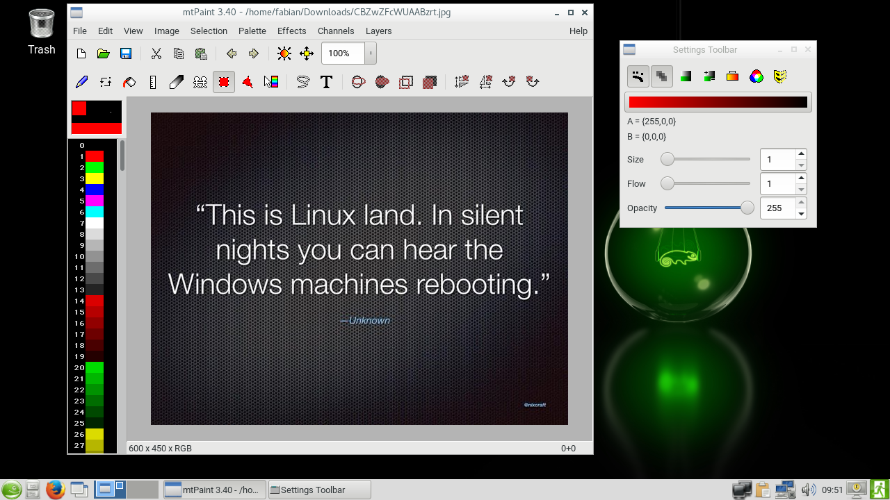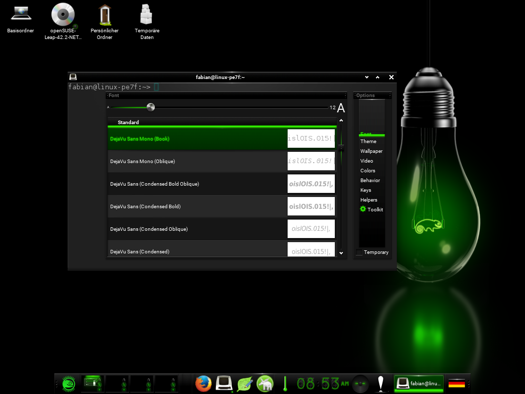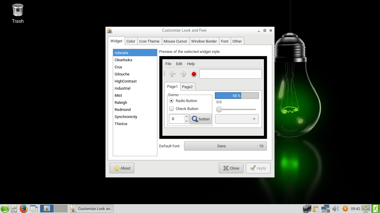 - 使用默认主题、配色方案、窗口装饰、启用合成(默认情况下已启用!)、标准小部件等。不要使用花哨的东西;-)