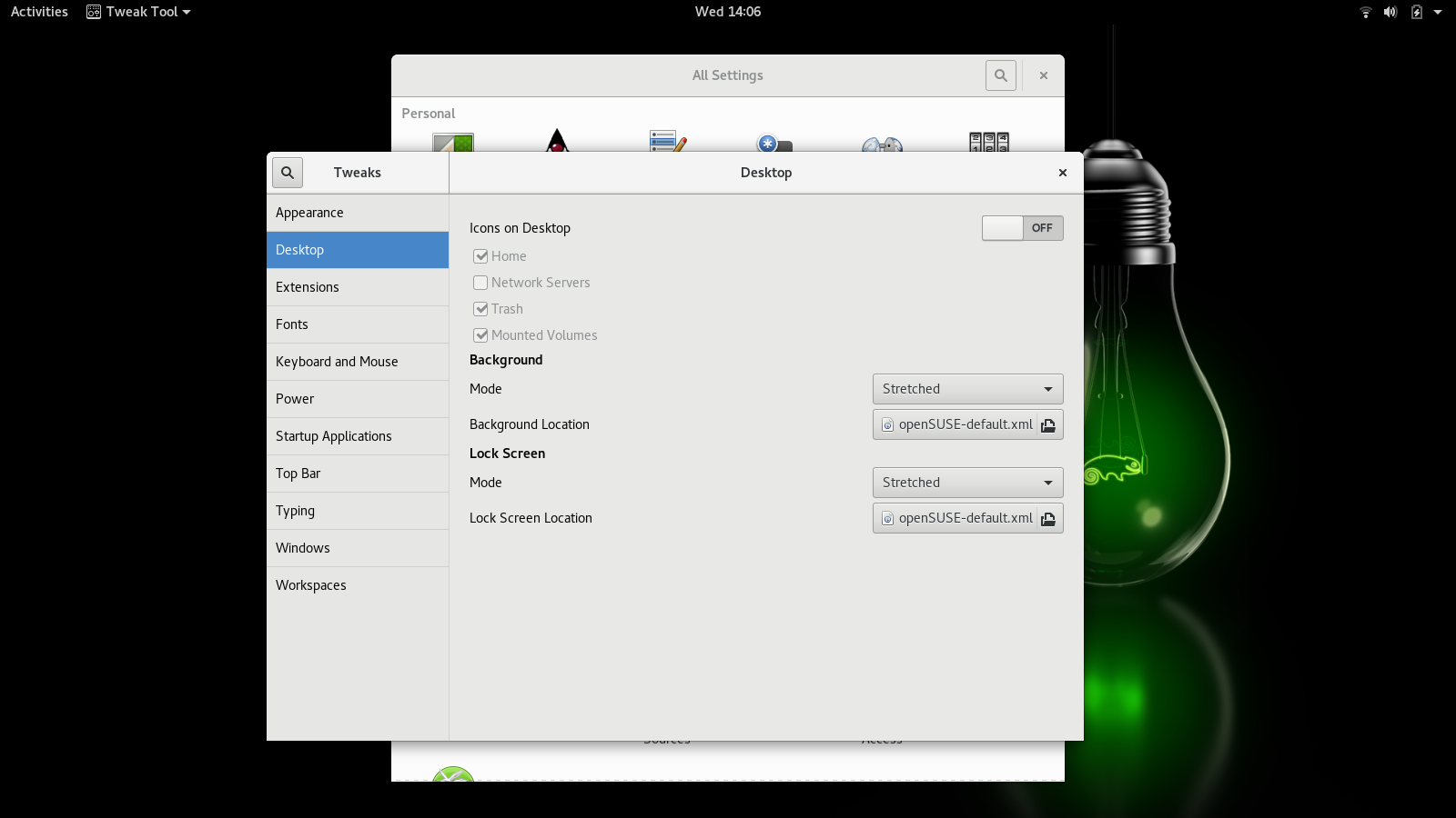 - 这可以让观看者获得 openSUSE 的代表性图像。