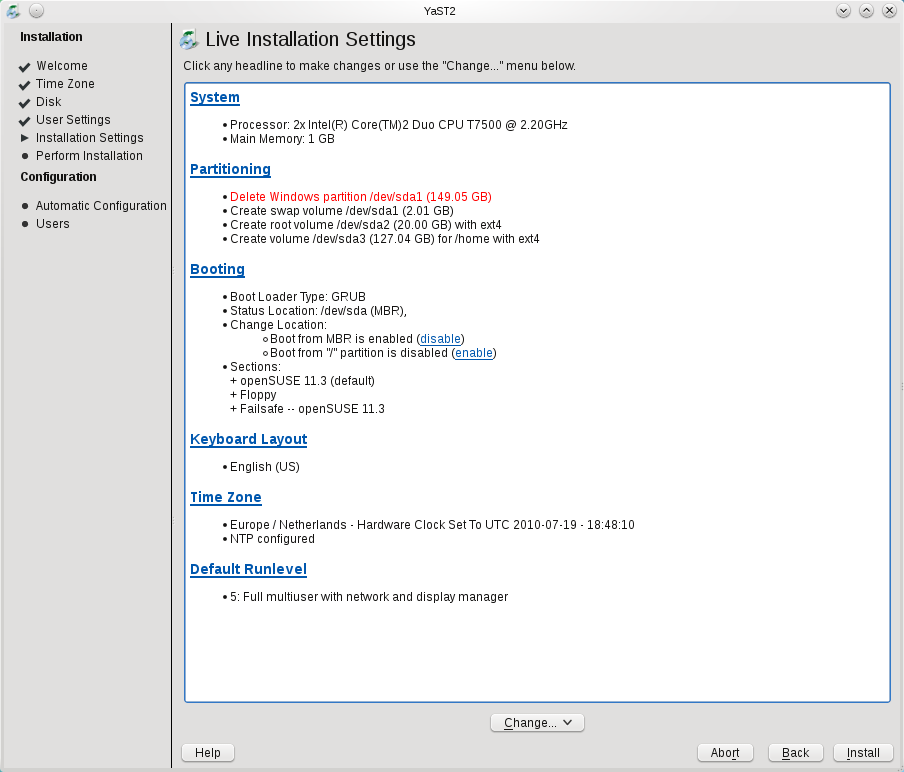 11.3 - Live CD - 安装摘要