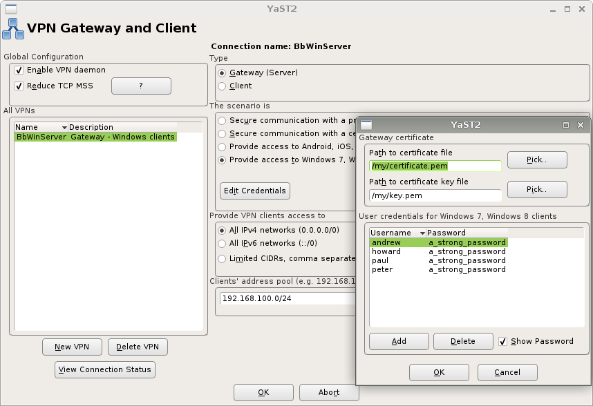 Windows 用户现在应该能够创建指向 VPN 网关的 VPN 连接,使用任何定义的用户名/密码组合。