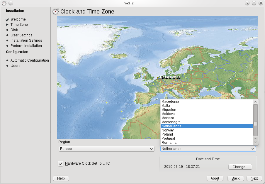 步骤 2:设置时间在这里,您需要设置您的时区,该时区显示在世界地图上。首先,在左侧下拉菜单中选择您的全球区域。