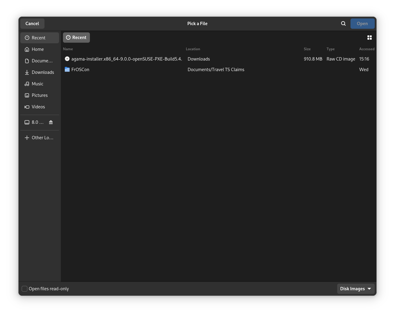 最后,找到块设备后,将其写入。 将 dd 指向完整路径,例如 /home/user/Downloads/openSUSE-*.iso。