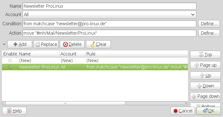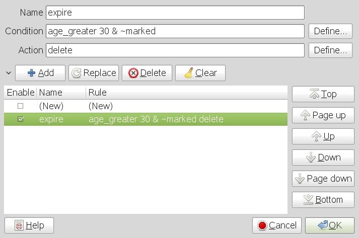 要在 Claws Mail 中自动删除 (子) 文件夹中的旧邮件(如在 KMail 中一样),请使用 Claws Mail 中的处理规则