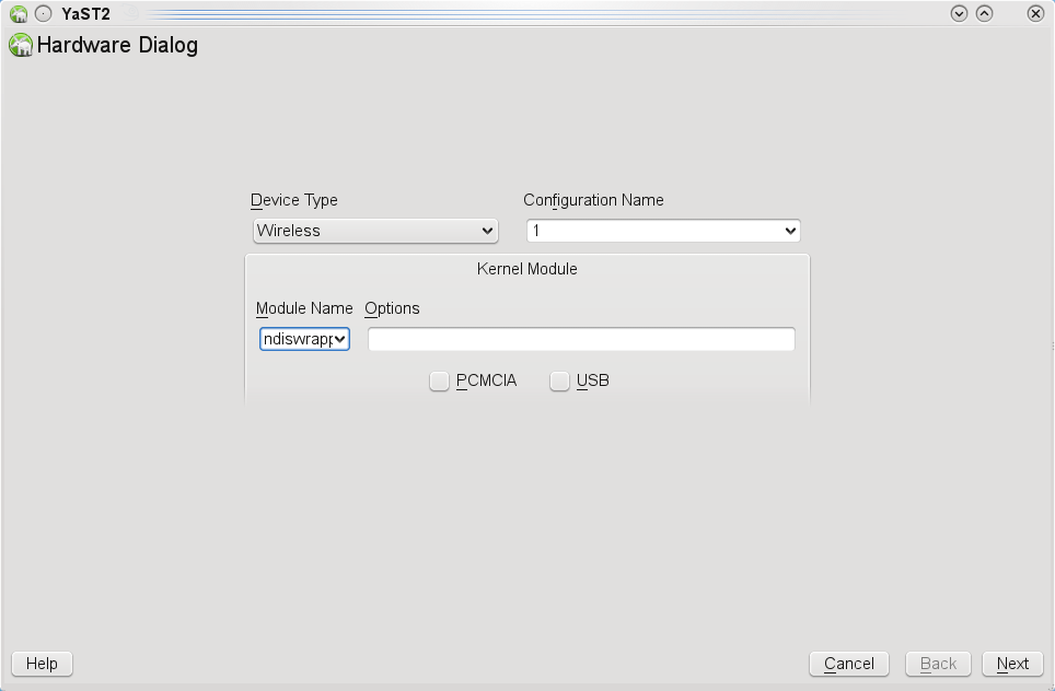 Ndiswrapper 包含在您的 openSUSE 安装 CD/DVD 中。使用 YaST 中的软件管理实用程序,并确保安装以下软件包