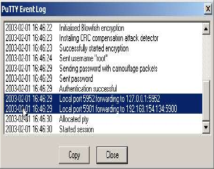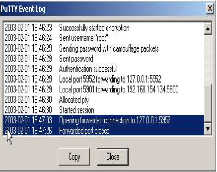 Putty 提供了一个“事件日志”,该日志对于检查隧道和/或调试隧道问题非常有用。可以通过以下方式访问此功能