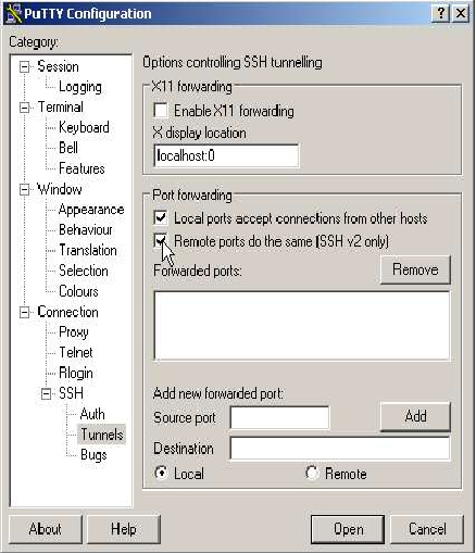 SDB:SSH tunnels from Microsoft Windows