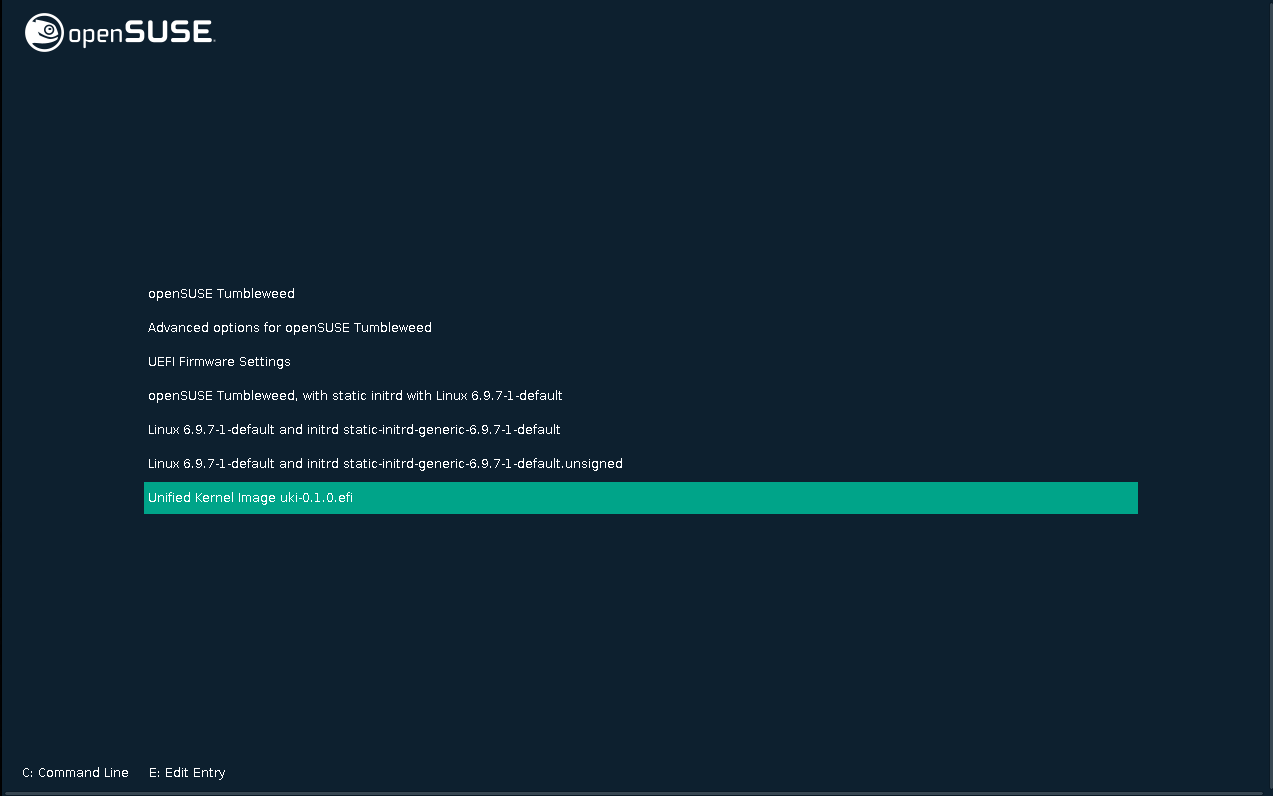 /usr/share/unified/certs/uki-<kernel_flavor>-<uki_version>-<cert_id>.crt中进行注册 - 根据您的引导加载程序添加新的菜单条目
