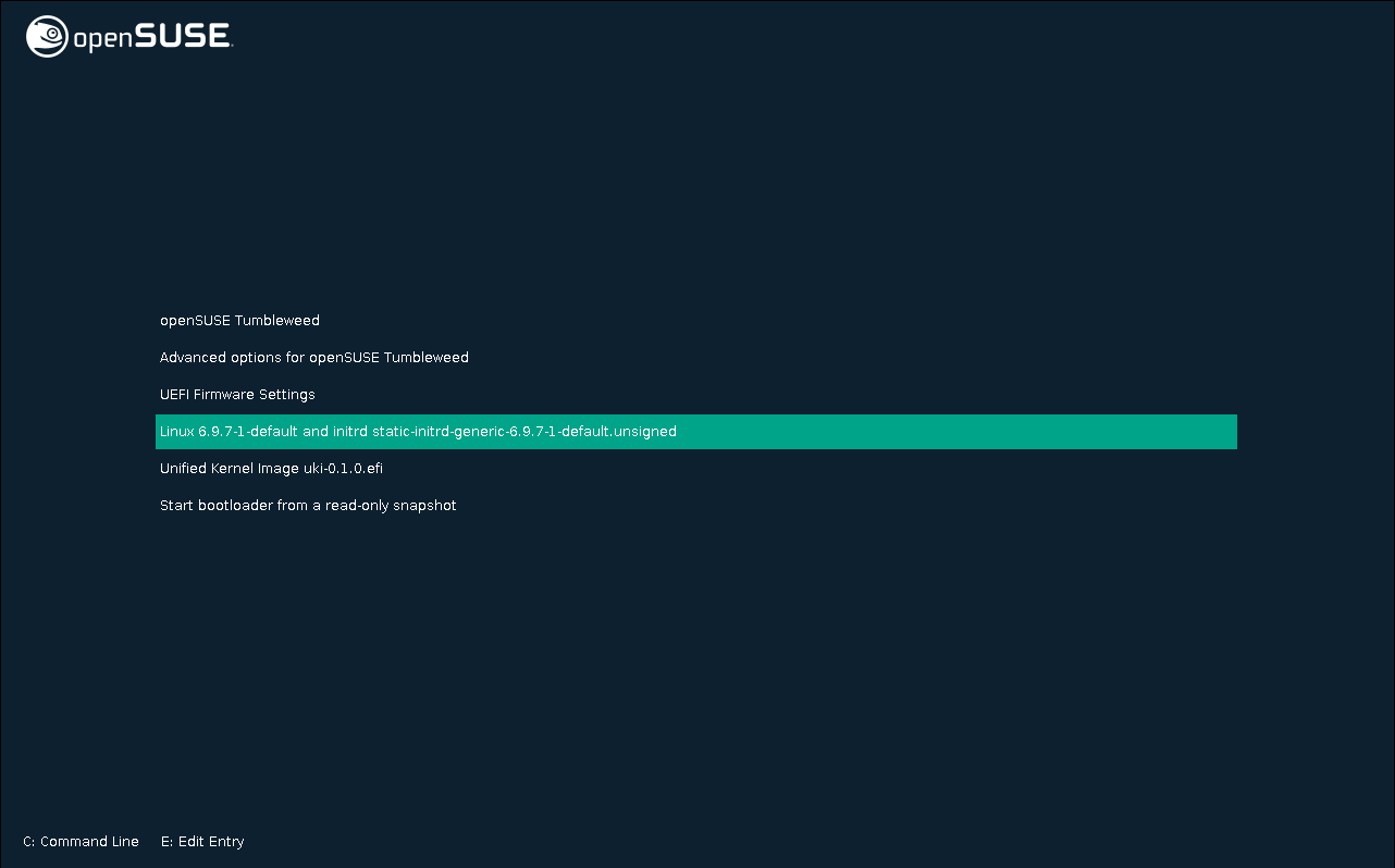 localhost:~ # ukit extension -n "debug" -p "strace" -u /usr/lib/modules/6.9.7-1-default/uki-0.1.0.efi [INFO] Check the uki /usr/lib/modules/6.9.7-1-default/uki-0.1.0.efi and extract the initrd... [INFO] Create the extension 'debug-ext.raw' with 'strace' in format squashfs at type raw for the uki /usr/lib/modules/6.9.7-1-default/uki-0.1.0.efi [INFO] Get all dependencies to install... [INFO] Create an image of sized 18M... [============================================================================================================================================================================================================================================================================================================\] 200/200 100% [INFO] extension image created at ./debug-ext.raw localhost:~ # cp ./debug-ext.raw /boot/efi/EFI/opensuse/uki-0.1.0.efi uki-0.1.0.efi uki-0.1.0.efi.extra.d/ localhost:~ # cp ./debug-ext.raw /boot/efi/EFI/opensuse/uki-0.1.0.efi.extra.d/
