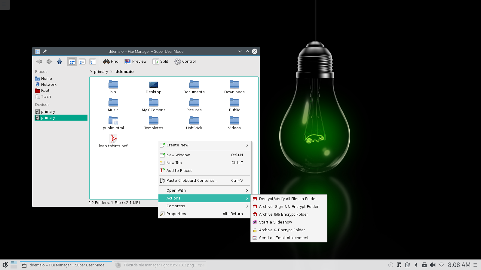 右键单击文件管理器 Plasma 5