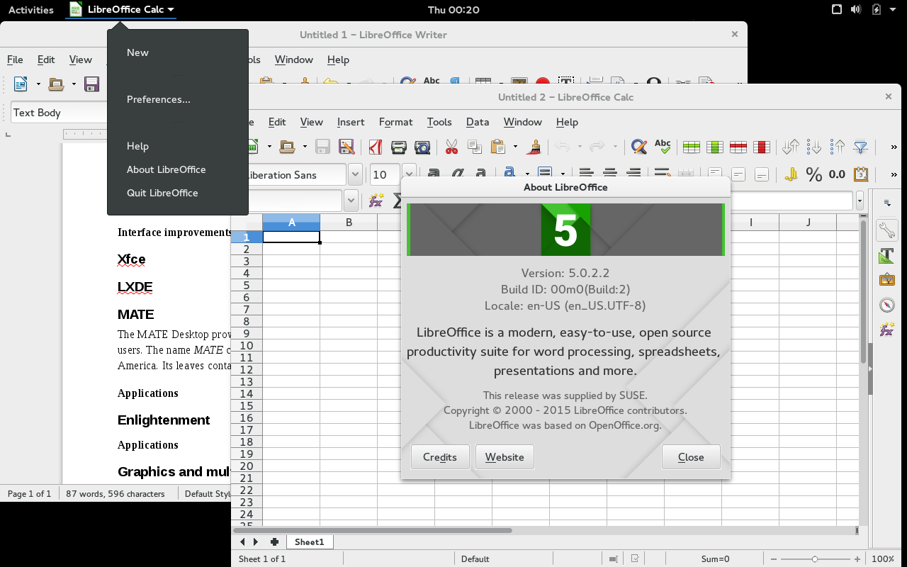MATE 和 LibreOffice 在 42.1 上