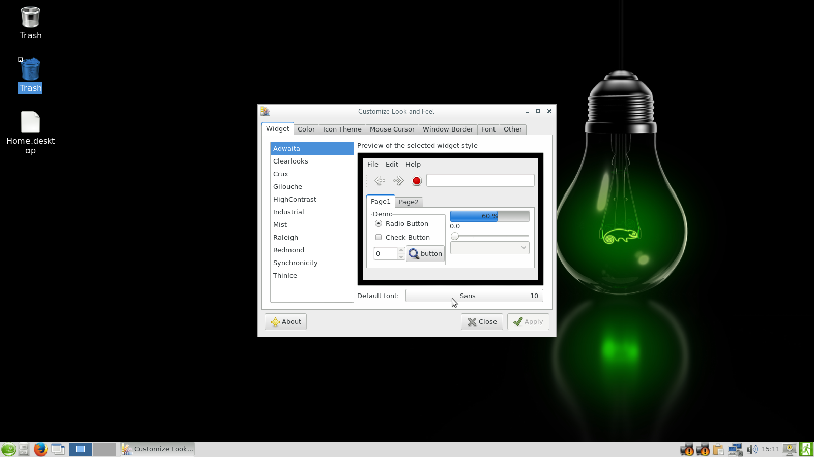 - 使用默认主题、配色方案、窗口装饰、启用合成(默认情况下已启用!)、标准小部件等。不要使用花哨的东西;-)