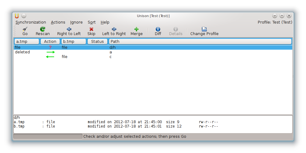 Unison 显示后续同步的可能操作