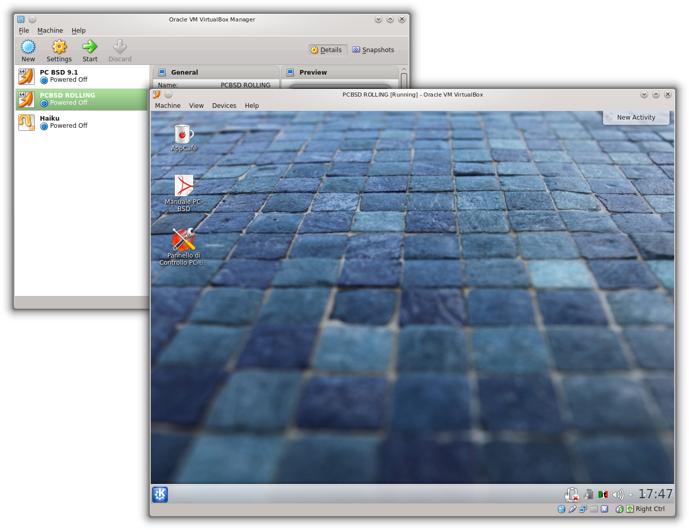 VirtualBox 在 openSUSE 12.3 上运行 PCBSD Rolling Release 会话 |