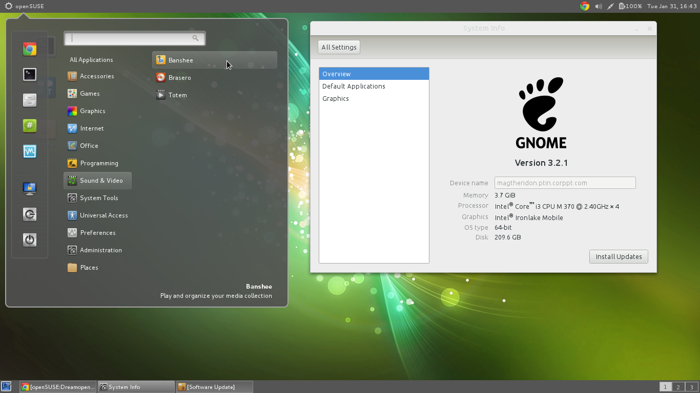 这是我的 Gnome 梦想布局。是的,它非常类似于 Unity 之前的 Ubuntu,这是我一直试图实现的目标,令人惊讶的是 openSUSE 拥有它。不是默认的,但很容易找到。当然,这是 Gnome3 之前的 openSUSE,所以直到 openSUSE 11.4 您都可以拥有它。Rajko m 20:32, 27 February 2012 (MST)